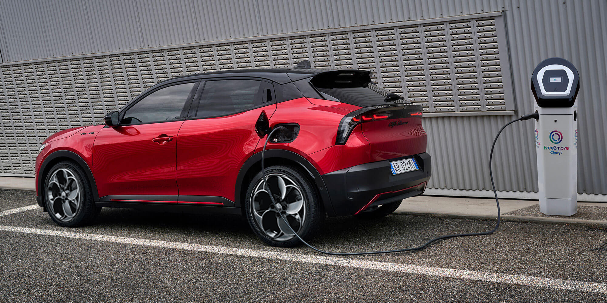 AC şarj (11 kW) ile Alfa Romeo Junior Elettrica, standart olarak sunulan Mod 3 Kablosunu kullanarak 5 saat 45 dakika içinde 0’dan %100’e tam şarj olur.